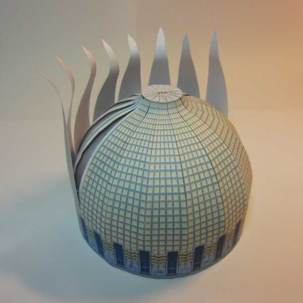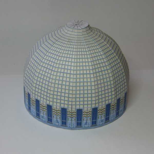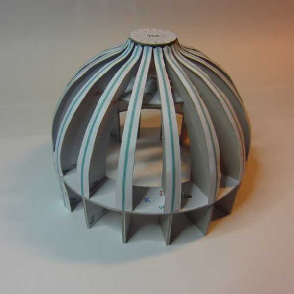 Teile 57a und 57b (Bogen 15) unten auf das fertiggestellte Kuppelgerüst setzen und der Reihe nach die 16 Bögen montieren.